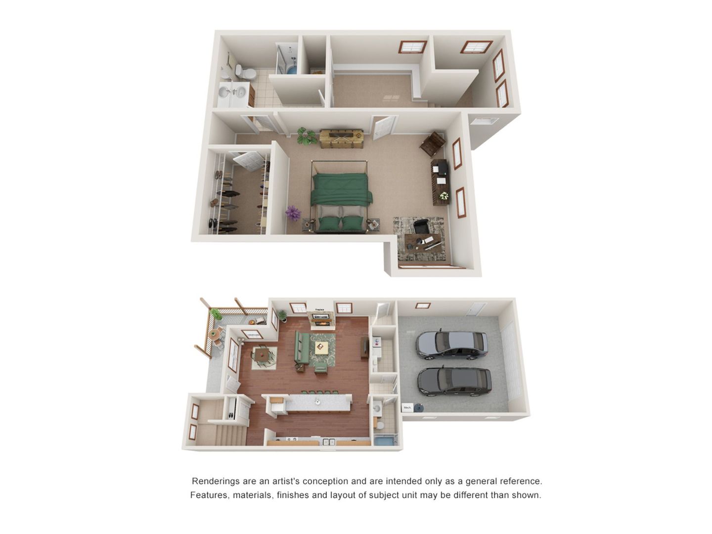 The Castleton is a very spacious 2-bedroom standalone home. At 1650 sqft., this home has plenty of room for all your belongings and then some. You’ll enjoy the huge primary bedroom and the open floor plan of the first floor. Plenty of windows means you’ll get lots of natural light, and because this home is standalone, you won’t have to worry about sharing a wall with noisy neighbors! Top this all off with a 2-car garage, and you’ve got a stellar apartment.